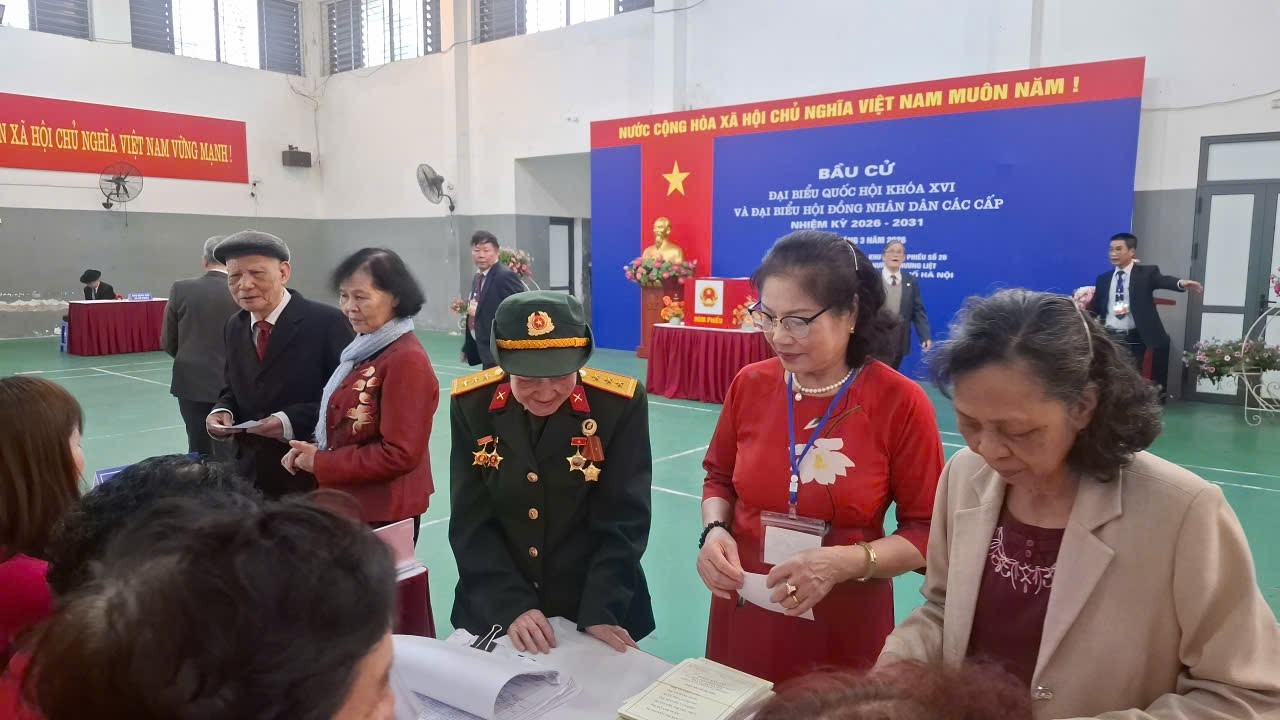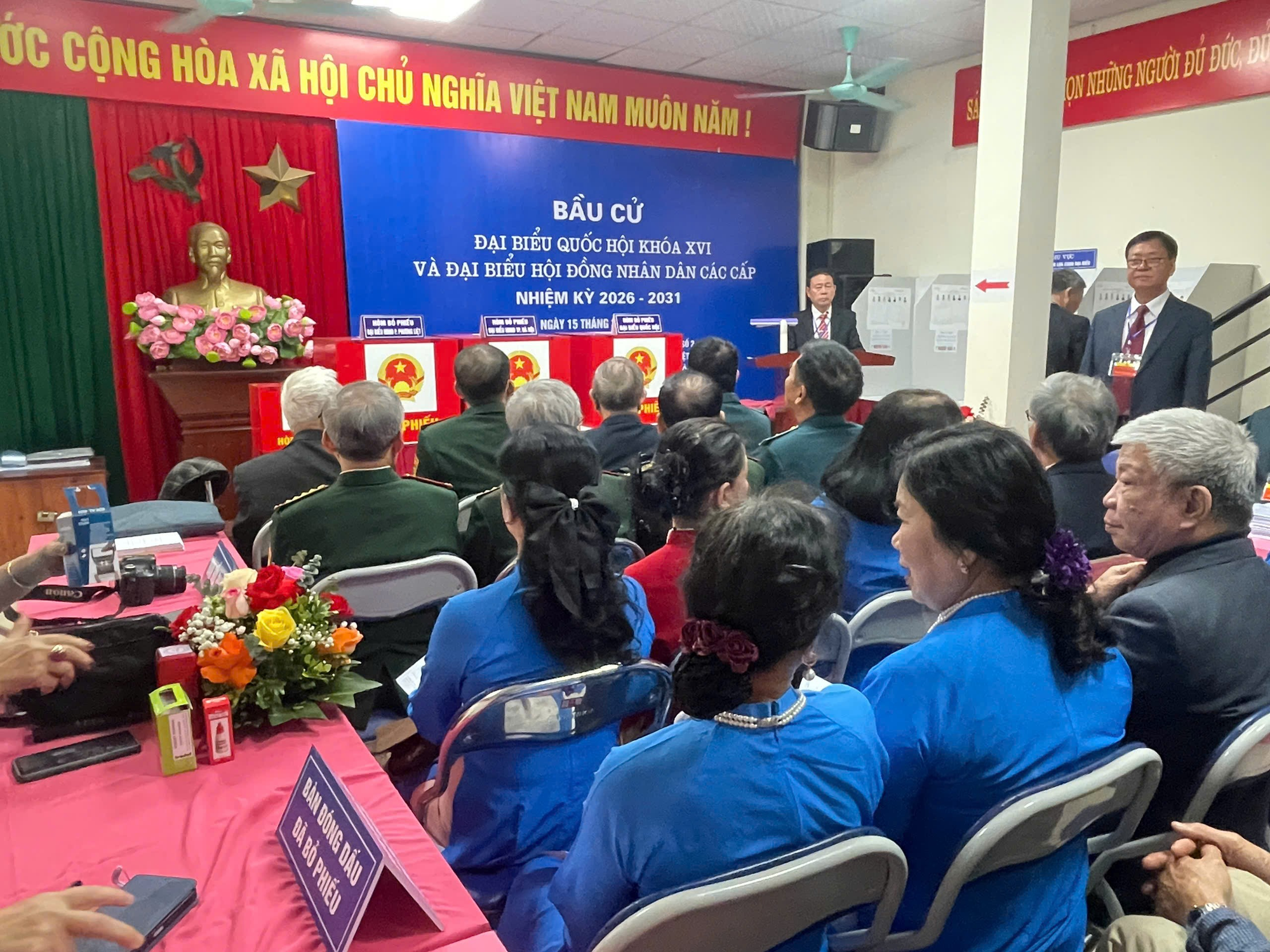 7 giờ sáng, những cử tri đầu tiên bắt đầu thực hiện quy trình bỏ phiếu. Với sự chuẩn bị chu đáo, kỹ lưỡng về cơ sở vật chất và phương án đón tiếp, phân luồng khoa học, trong suốt thời gian bầu cử, việc bỏ phiếu tại các khu vực diễn ra trong không khí phấn khởi, nghiêm túc và trật tự.